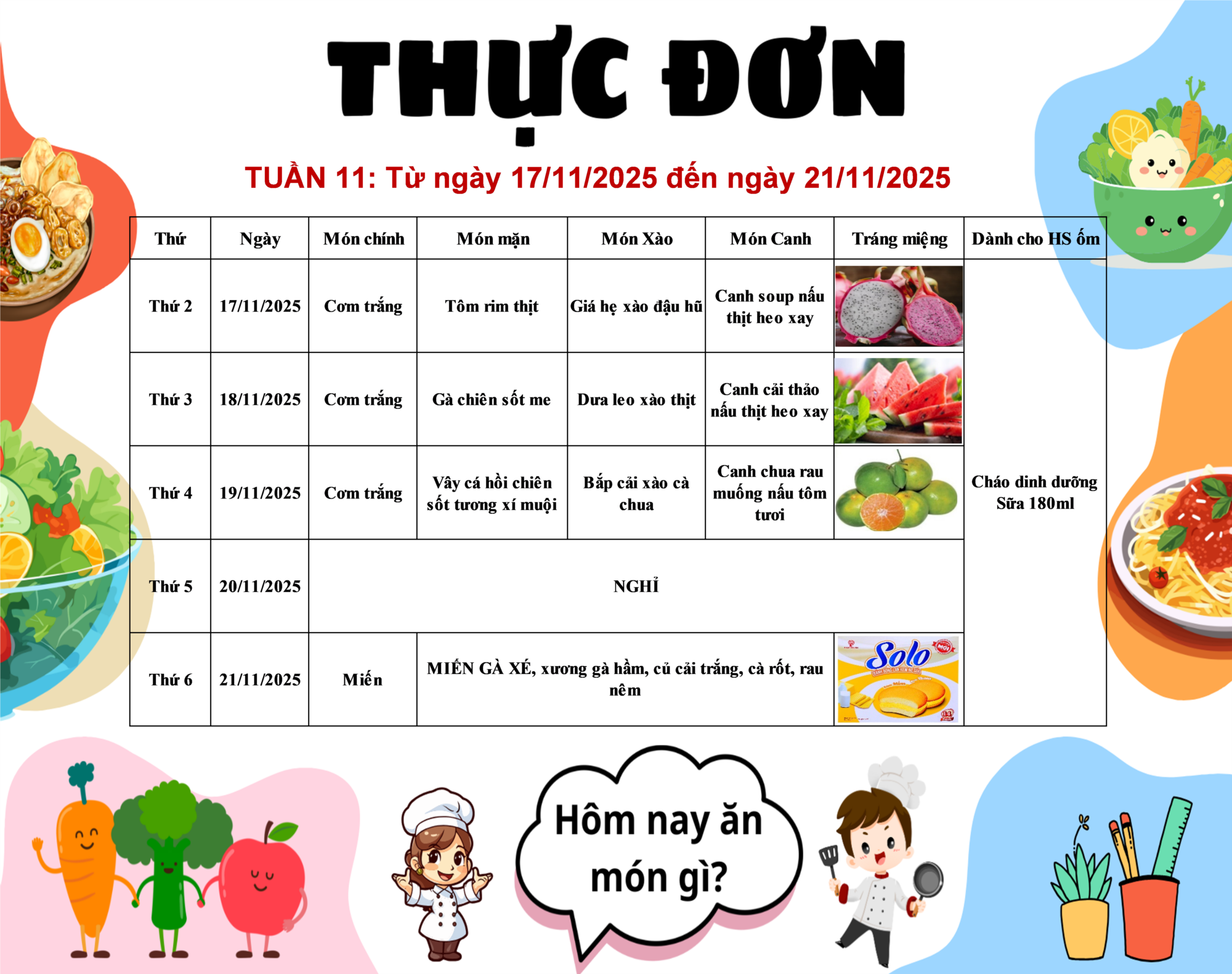 Nhà trường luôn nỗ lực không ngừng để tạo ra một môi trường học tập, giải trí và nghỉ ngơi tốt nhất cho các em học sinh. Trong đó, chất lượng của các suất ăn bán trú đóng vai trò vô cùng quan trọng, đảm bảo dinh dưỡng và sức khỏe cho các em học tập hiệu quả.